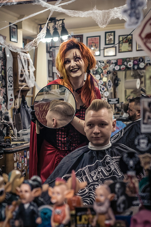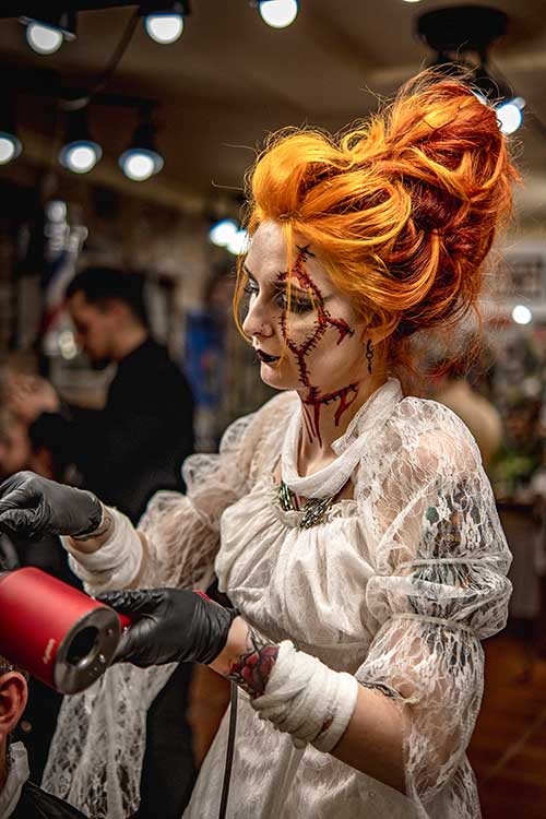 W tegorocznej edycji strzygła za fotelami cała plejada halloweenowych gwiazd: czerwony kapturek z odrąbaną głową wilka w koszyku, Joker, arabski szejk, viking Bjorn Żelaznoboki, zakrwawiony asystent Dr. Frankenstaina. A na recepcji czuwała nad tym blada, czarnowłosa wampirzyca. Zerknijcie na zdjęcia autorstwa Igora z One Pic Studio: